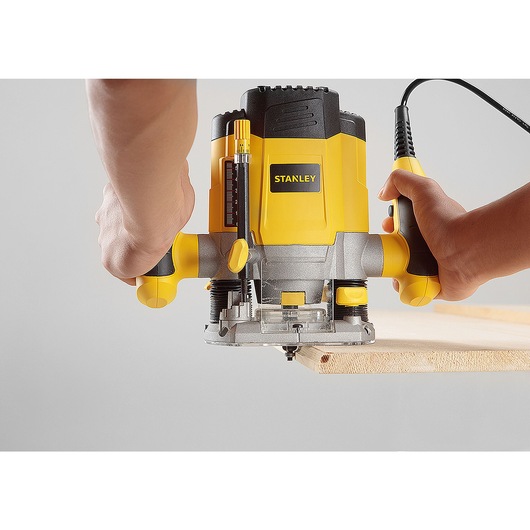 Descripción Poderoso motor de 1200W Selector de profundidad de 3 niveles para ajuste preciso y facilitar el trabajo en diferentes etapas Incluye 3 pinzas de sujeción para pernos centradores de hasta 8mm Incluye 6 fresas